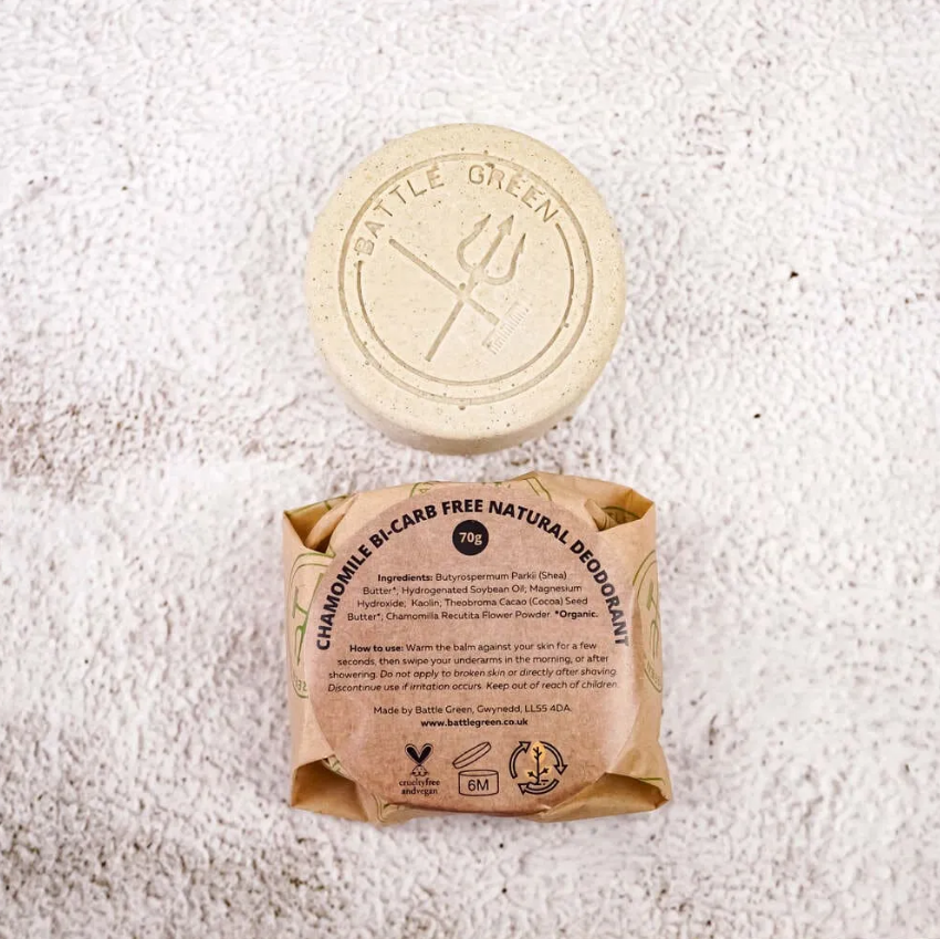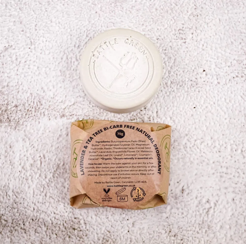 These bicarb free natural deodorant bars from Battle Green are handmade in Wales with effective plant-based ingredients. Each deodorant is vegan, PETA certified and cruelty free.